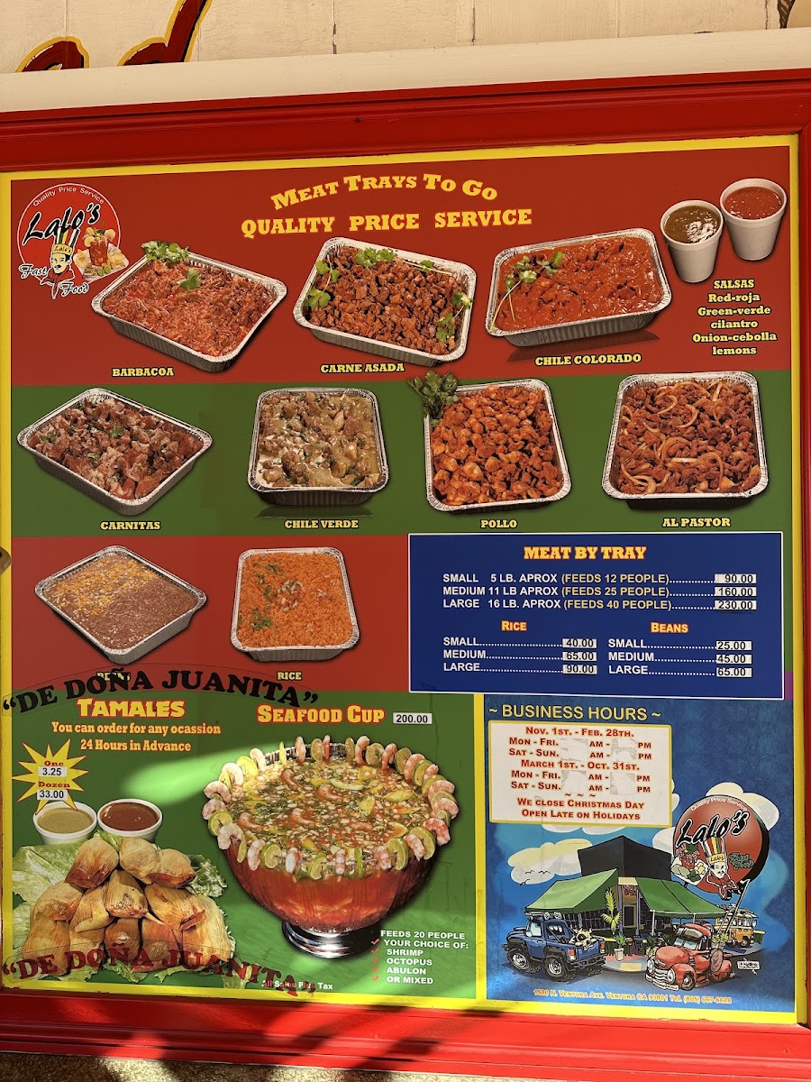 Welcome to Lalo's Fast Food, nestled conveniently at 1580 N Ventura Ave in the vibrant city of Ventura, CA. This local gem has captured the hearts and appetites of many, serving up a delightful array of Mexican and seafood dishes that leave a lasting impression. With a reputation for quick service and generous portions, it’s the perfect spot for those seeking delicious comfort food without the wait.